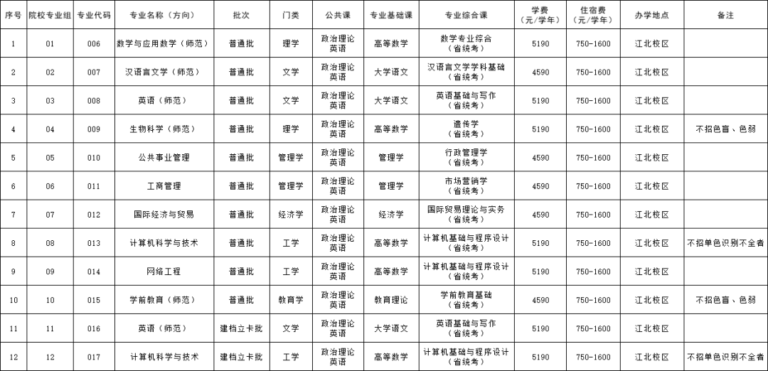具体招生计划、专业目录和录取批次以省考试院公布为准,教学地点为校本部。
