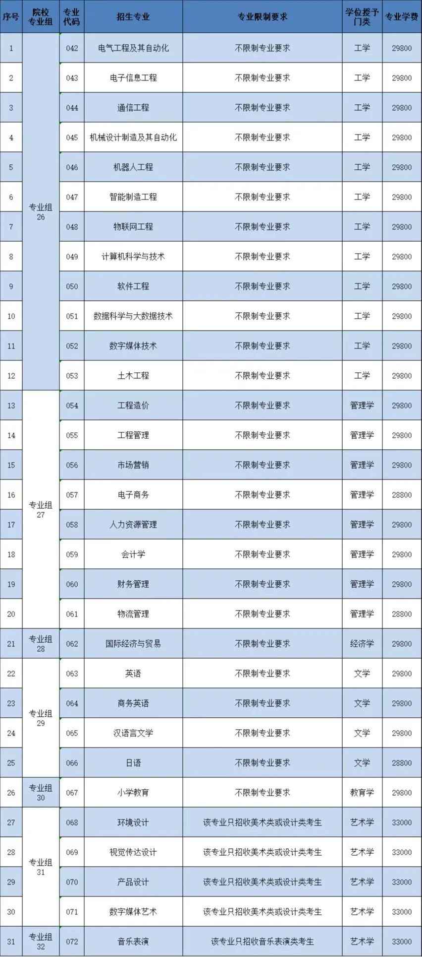 全部不限前置专业要求!华南农业大学珠江学院2023年普通专升本(专插本)拟招生计划公布,拟设招生22个专业,相比2022年增加了2个专业。