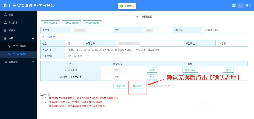 1.短信验证码:考生选择短信确认方式,填写手机接收到的验证码进行确认。志愿填报期间,广东省教育考试院将使用10639678或10692315731等号码发送有关短信,请考生密切留意上述号码发送的短信。