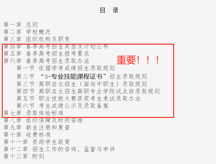 对于3+证书考生来说,可选院校里面包含了公办和民办两种性质的院校,大家在查看招生章程的时候留意以下几个内容: