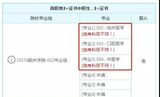 模块“3+证书”填写的第1行和第2行存在重复的院校代码和专业组代码(院校代码和专业组代码组合起来不能重复)