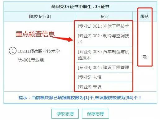 保存志愿之后,可以继续填报或者修改志愿;