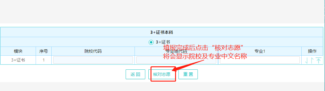 填报完成后点击“核对志愿”,将会显示院校及中文名称。