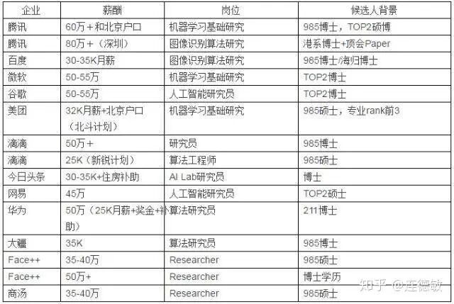 作为热门中的热门,人工智能领域薪酬水平可谓惊人。具体的可以看下面这些知名企业的薪资。