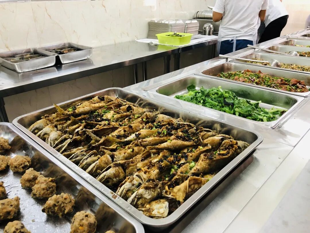 自选窗口,美味任君选择!时令蔬菜、白切鸡、小炒肉、黄瓜炒木耳、瘦肉炒香干、豆豉鱼、什锦丸子清蒸福寿鱼、秋刀鱼、红烧肉、咕噜肉……酸甜麻辣,应有尽有~