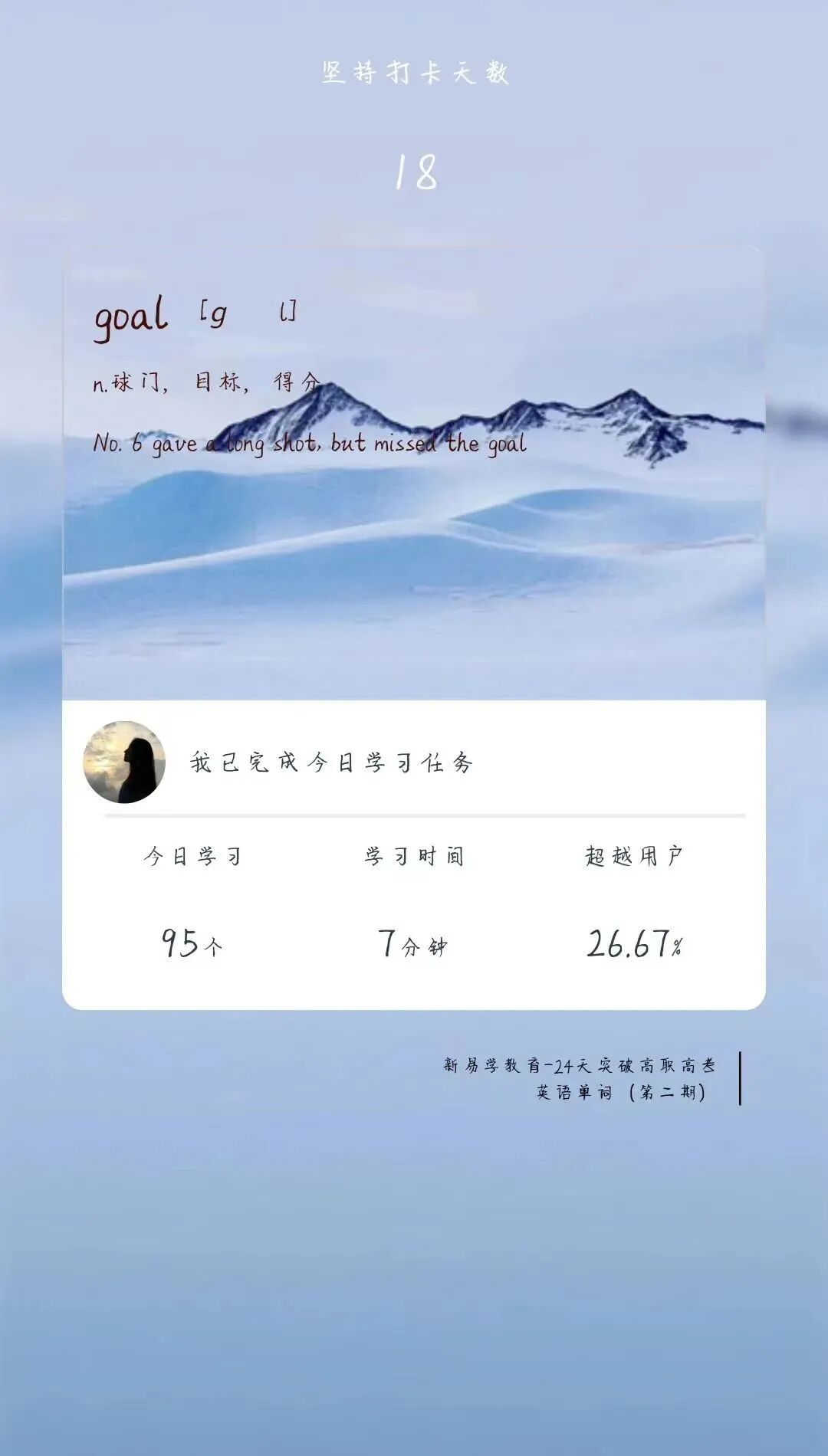 成功背完当天的单词,会有一张专属于你的“海报”,如果你能坚持24天每天都把海报发到群里打卡,那么你还能拿到最终的“大礼”。