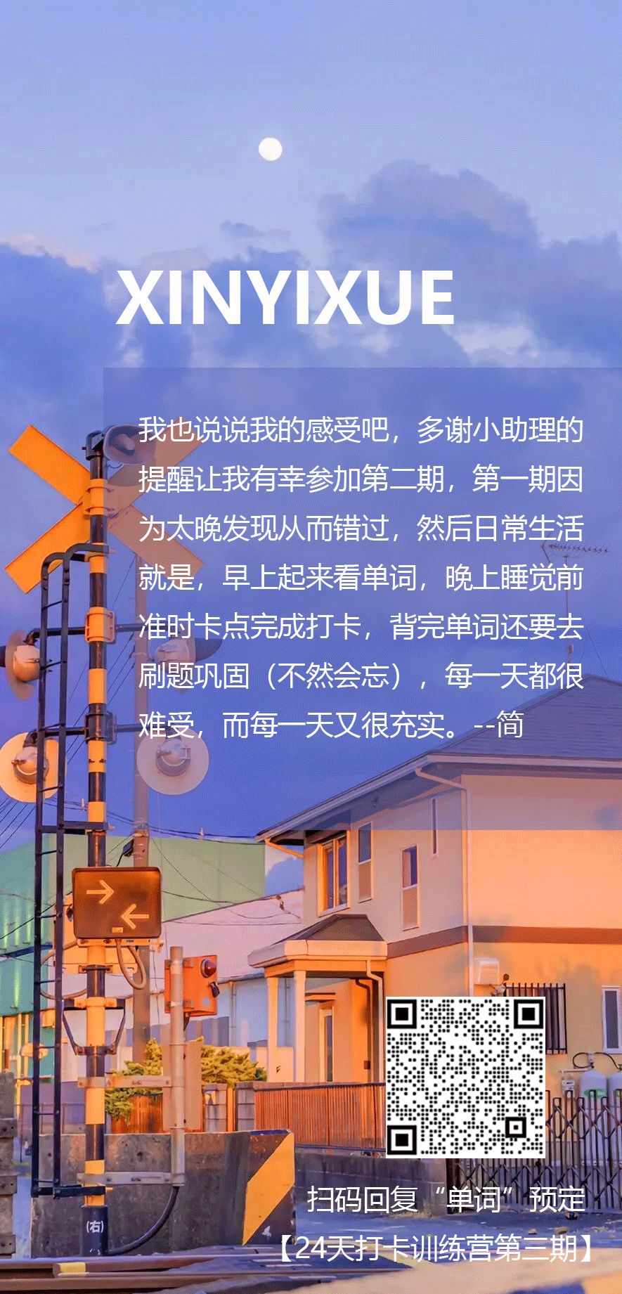进群方式:扫描下方二维码添加小助理微信,回复“单词”。小助理会统一拉大家进群。