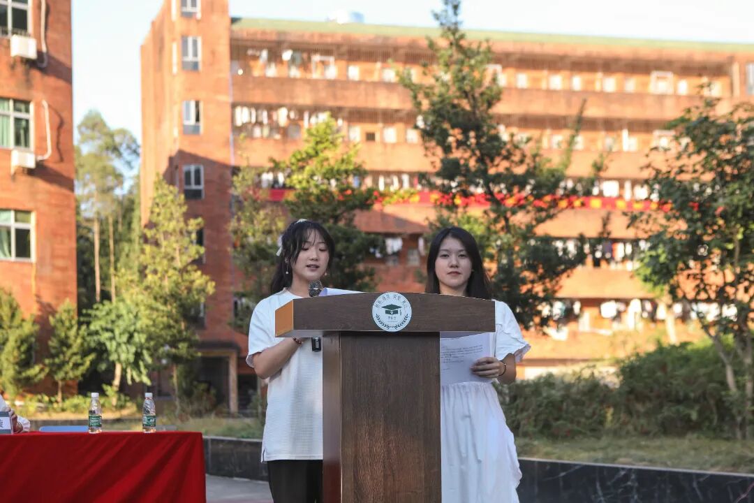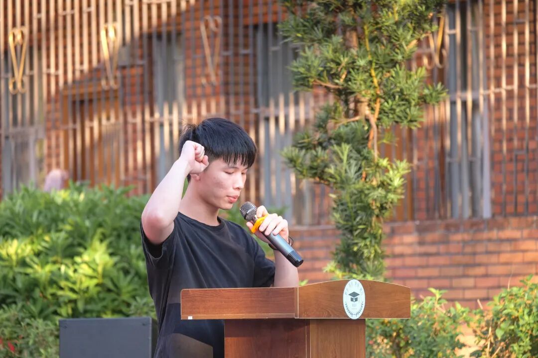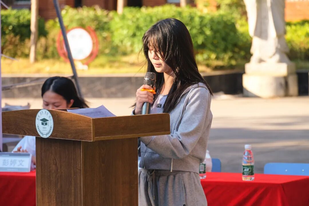 班主任代表陈杨璇老师和教师代表林远辉老师代表学校的全体老师郑重承诺会继续以认真、严谨的工作态度对学生以及学校负责任,在这高考倒计时80天里与同学们风雨同舟,并肩作战。