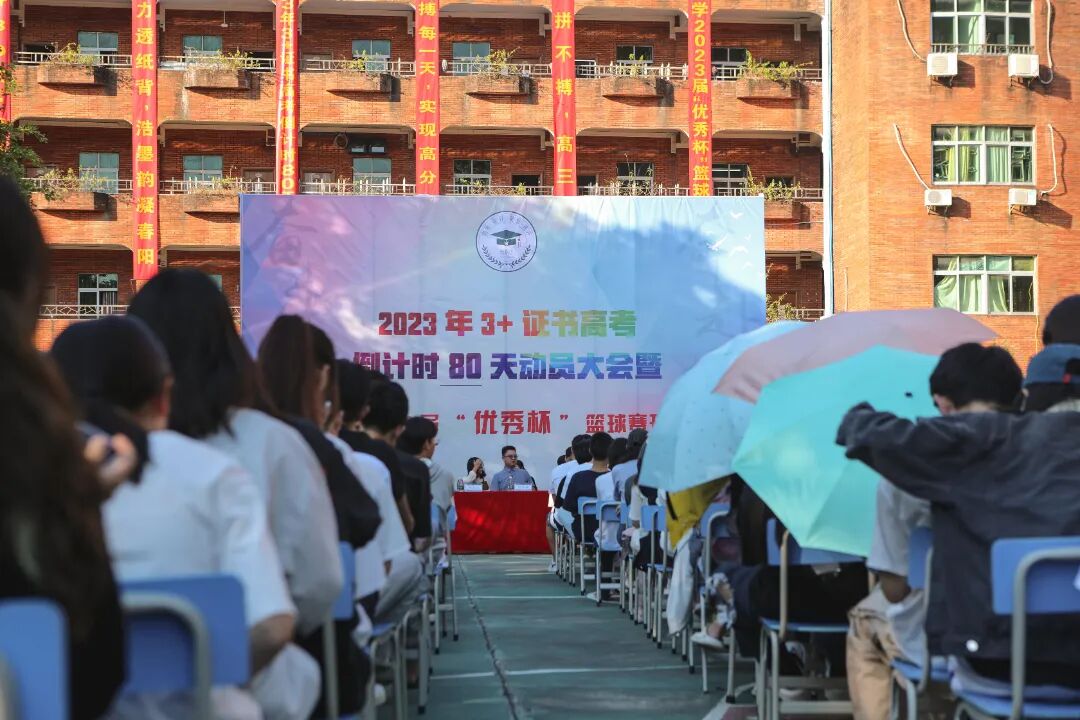 2023年3+证书考试在即,为了丰富学生校园生活,缓解学生学习压力,激发学生学习热情;促进学校与班级,教师与班级,学生与班级,教师与学生,学生与学生之间的交流,增强团队协作能力,新易学举办2023年3+证书高考倒计时80天动员大会暨新易学2023届“优秀杯”篮球赛。