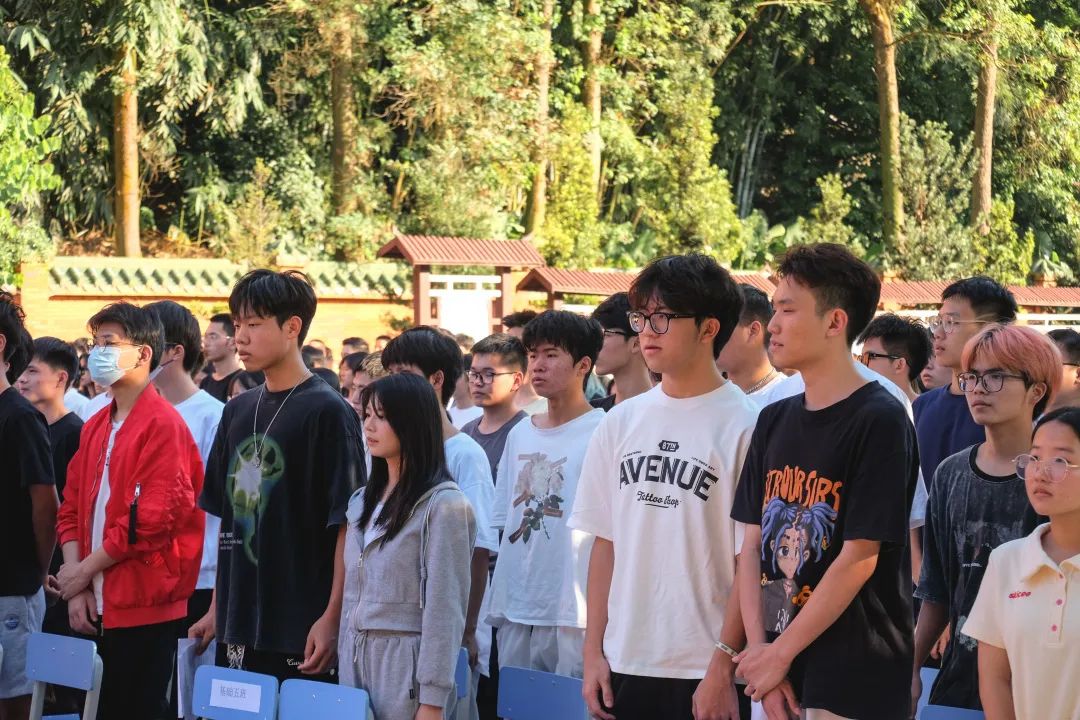 仪式开始,全体师生起立,奏唱国歌,顿时全场斗志昂扬。