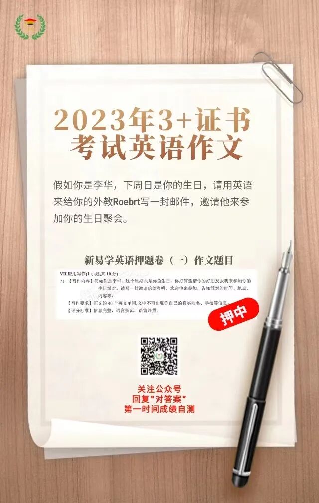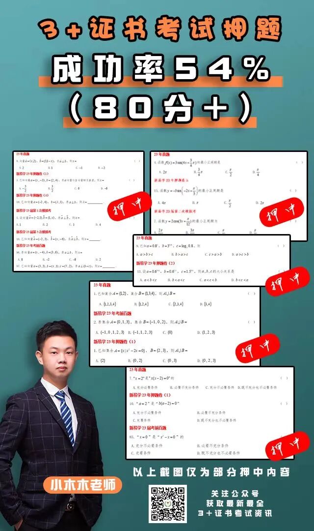在2023年3+证书考前,有看过新易学押题卷的同学都知道,高职高考英语真题卷和新易学英语押题卷1的作文一模一样,高职高考数学卷很多题都在新易学数学押题卷中出现过,并且小木木老师在直播中有详细的讲解技巧。
