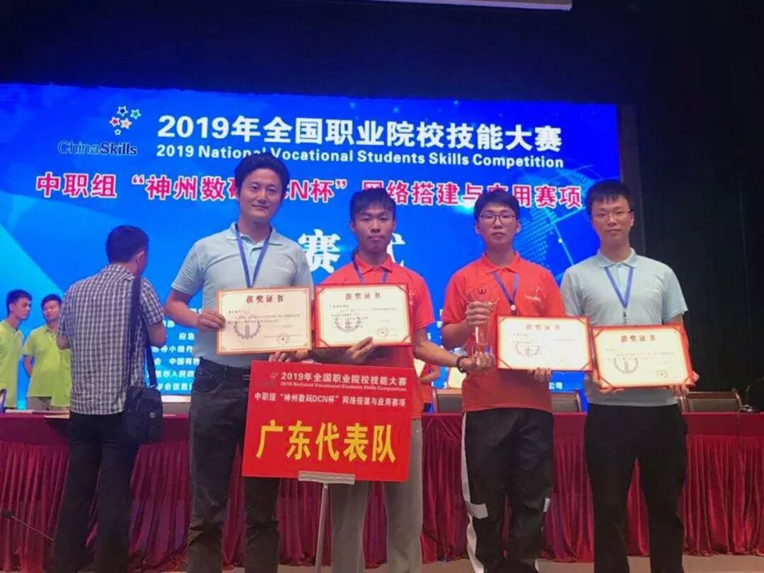 我校在2019年度全国职业院校技能大赛中夺得“网络搭建与应用”一等奖,参赛队伍:薛宁海老师、黄嘉濠同学、吴泽权同学、杨文浩老师