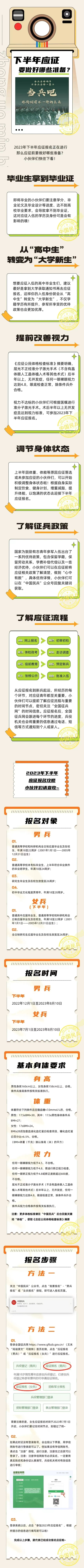 据悉,当前阶段应征报名对象为男青年,条件为:高中(含中专、职高、技校)毕业生及以上文化程度的青年(含高校在校生),年满18至22周岁(2001年1月1日——2005年12月31日出生);普通高等学校本专科毕业生,年满18至24周岁;研究生毕业生及在校生放宽至26周岁;初中毕业文化程度男青年,年满18至20周岁。