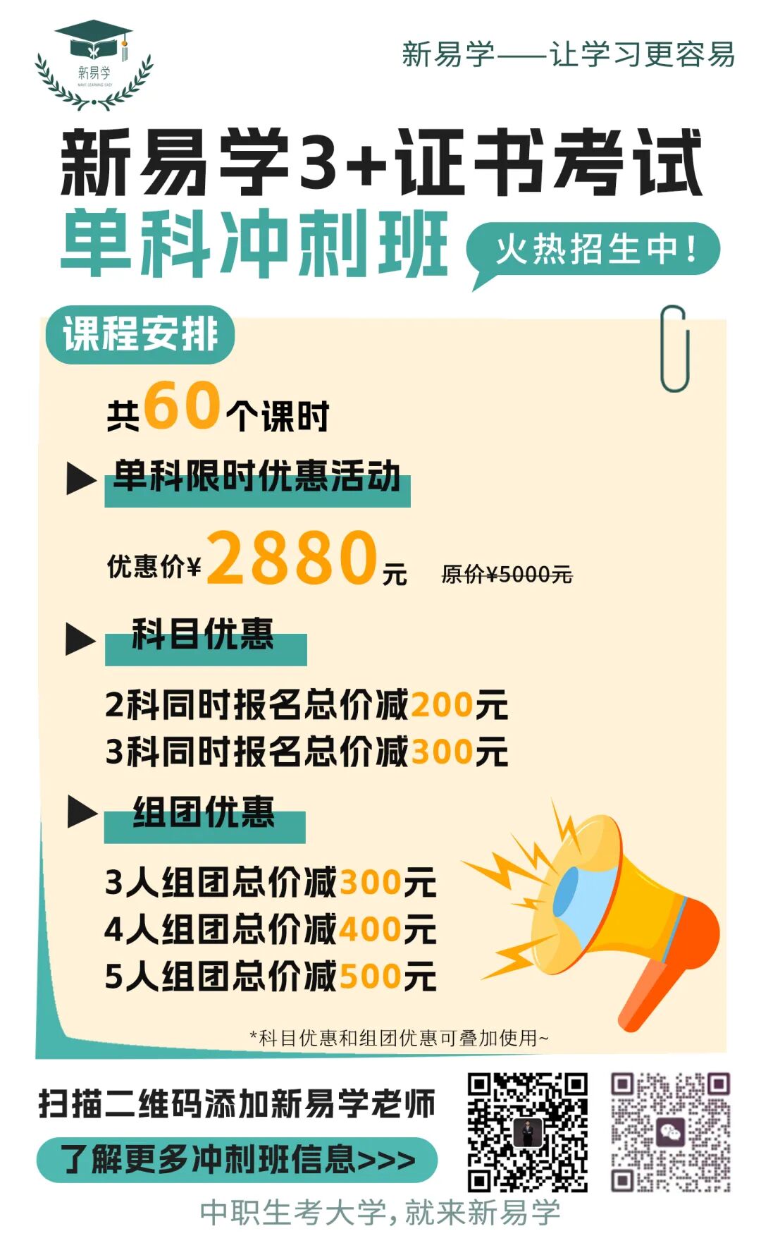 新易学高职高考冲刺班让你少走弯路,短期内快速提分。