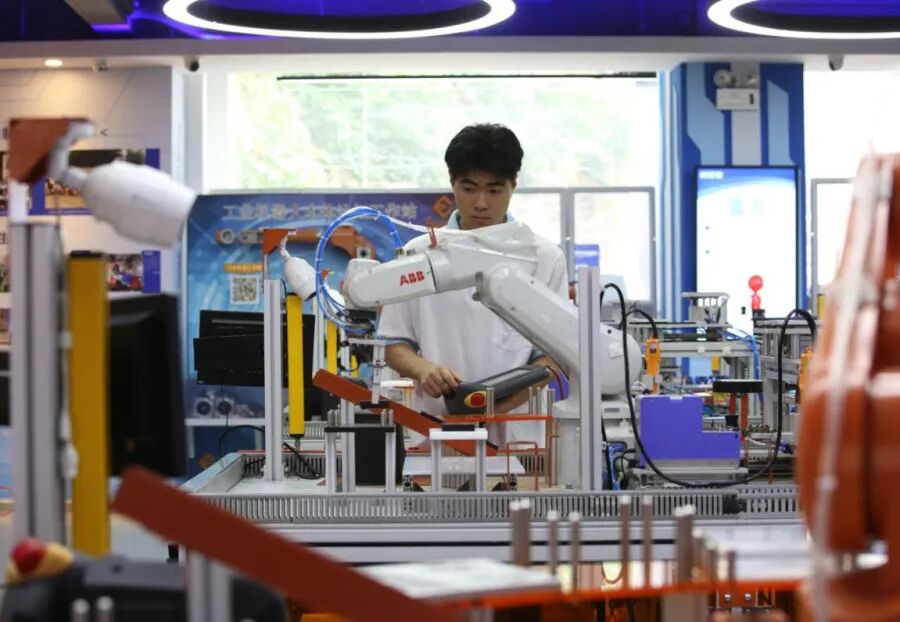 不久前,在广州市智能制造技术产教融合实训示范基地揭牌仪式上,广州市轻工职业学校校长黄艳表示,现在一般是“3+2”模式,学生读完高职后,甚至未来还有机会读职业本科、硕士,这些体系在不断建设,未来就业前景会更好。