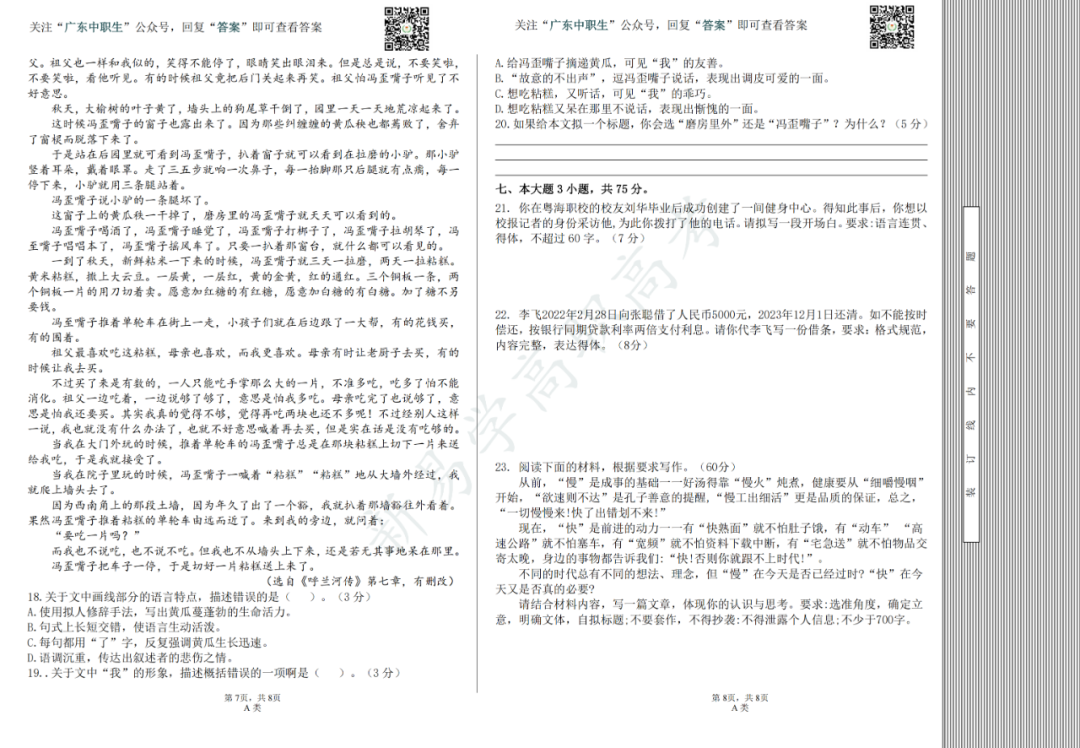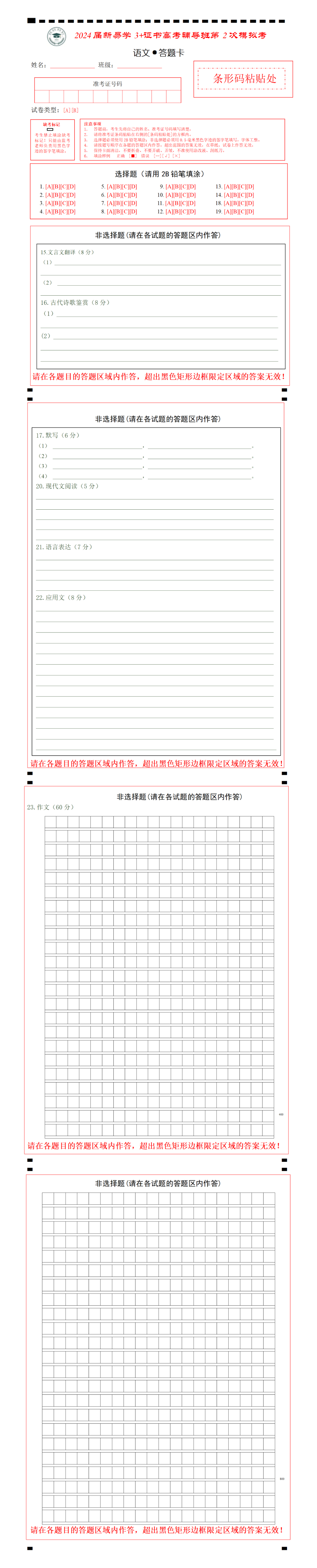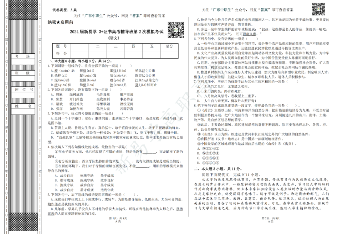 内部资料|24届新易学二模语文试卷(含答案解析可打印),3+证书考前自测!