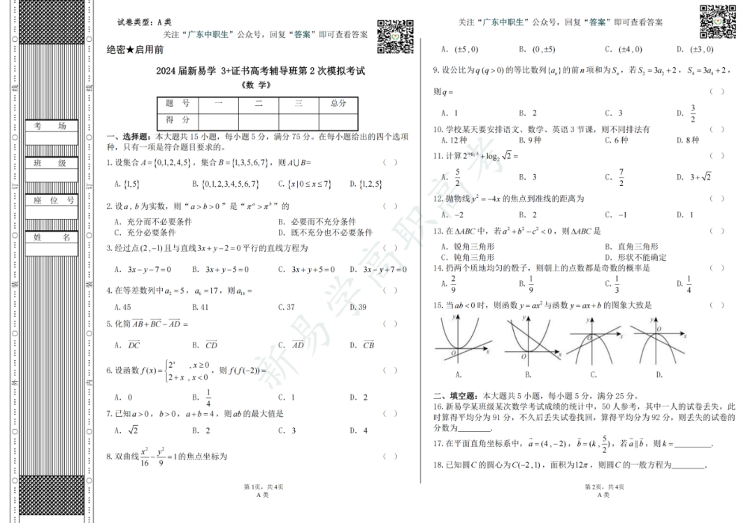 内部资料|24届新易学二模数学试卷(含答案解析可打印)