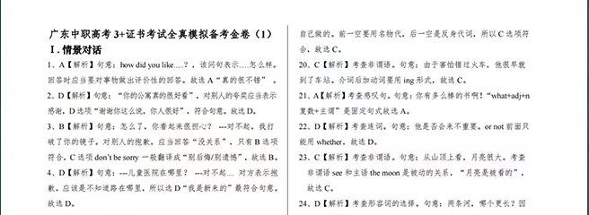 高职高考冲刺轮教材的题目都提供相应的参考答案及详细解析,这样可以使同学们做一题懂一题,举一反三拿下同类题。