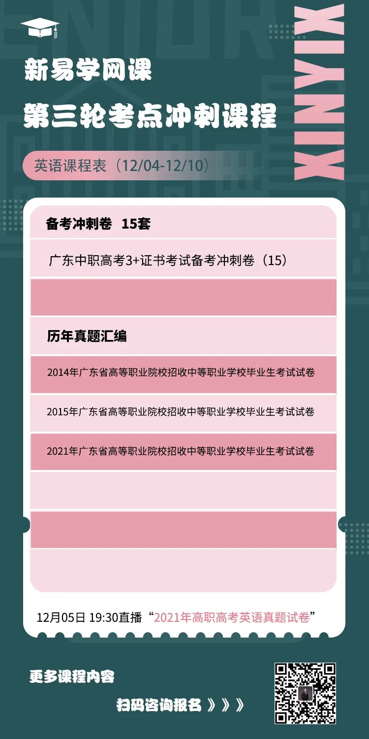 3+证书考前冲刺必备套卷:新易学冲刺轮教材。冲刺轮教材含语文、数学、英语三科的模拟卷、冲刺卷、历年真题卷,共9本,通过三种类型试卷组合拳,战胜高职高考。