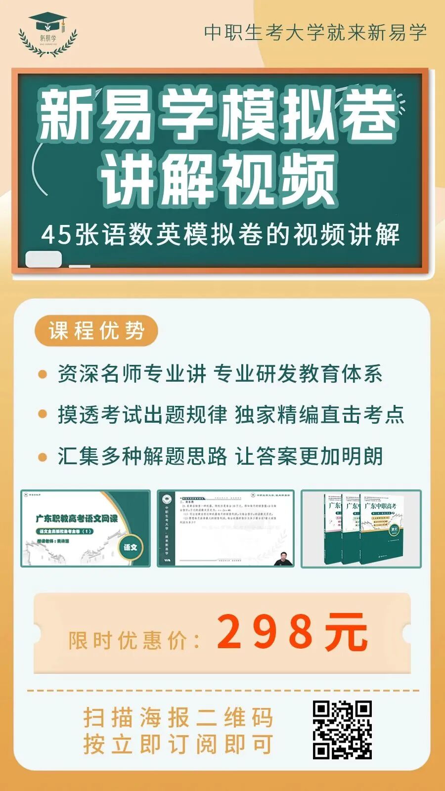 新易学网课,专业师资,老师们都是对3+证书数学有较长时间的研习,此次活动领取的数学模拟卷为新易学网课配套教材之一,如果学习数学很头疼但又不甘心放弃的同学,不妨考虑一下新易学模拟卷讲解视频课。