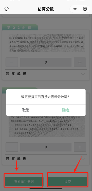 滑动到页面最下方,会出现两个提交方式。选择“查看单科分数”,即可查看当前科目分数。