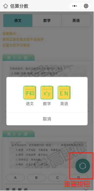 增加重置功能+英语估分!3+证书1分钟估分,看看你考了多少分?