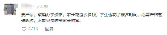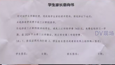 有学生家长表示,目前学校给的解决方案是退学退费,如果选择继续就读的学生,下学期减免学费7800元,免费在学校学习一年,在2024年注册学籍后,再正常交第三期学费。