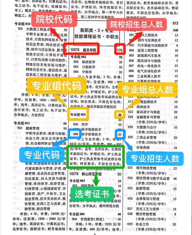专业目录的重要性不言而喻,它是考生们选择学校和专业的重要参考资料。《广东省2024年普通高校春季高考统一招生专业目录(中职生版)》,书里包含3+证书院校代码、院校中文名称、招生总人数、专业人数、专业代码、选考证书类型、学费、就读校区等内容,是填志愿不可缺少的一本书。
