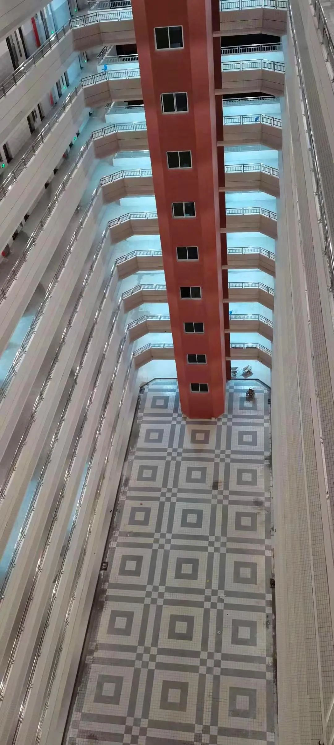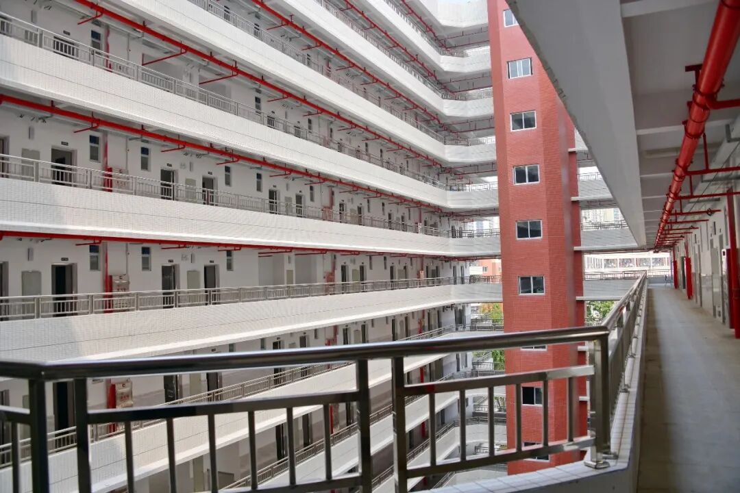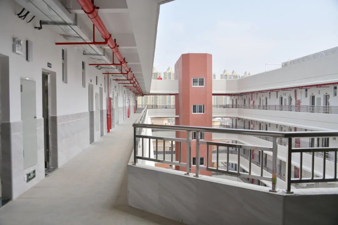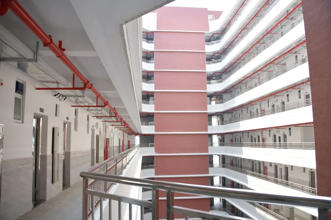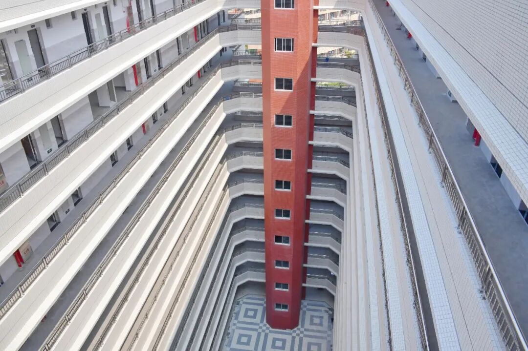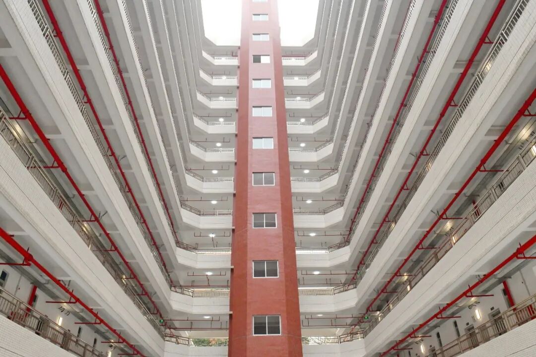 从第二层起,每层楼均设有活动休闲空间,在增加通风采光面积的同时,也能作为同学们的活动场地,后续将配套相关活动设施。