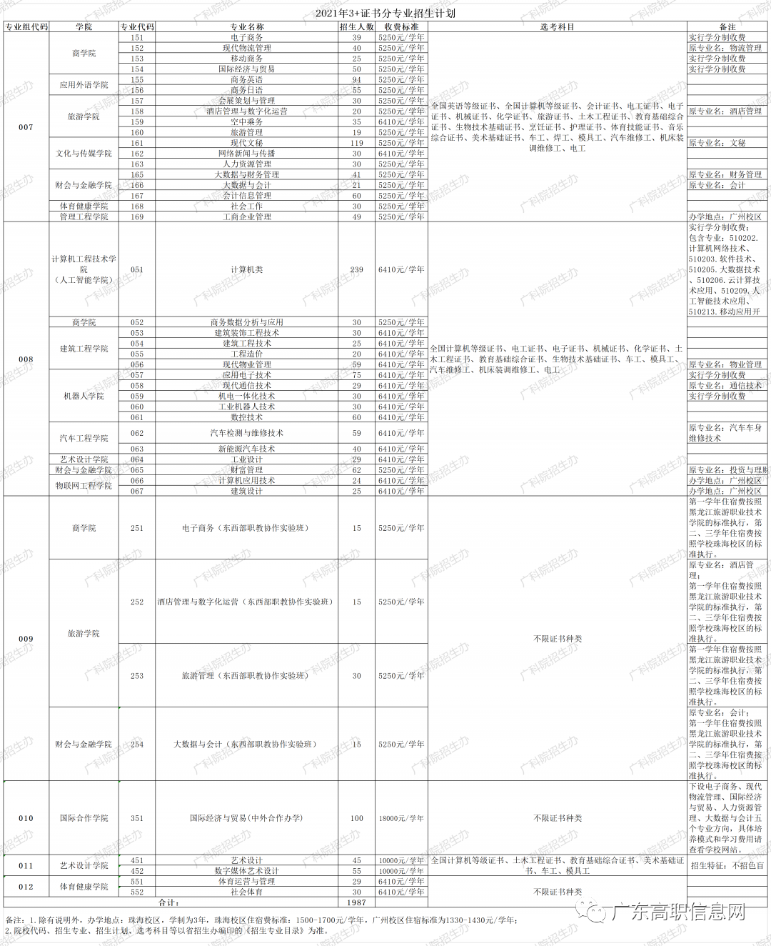 公办高职|广东建设职业技术学院2021年3+证书招生计划