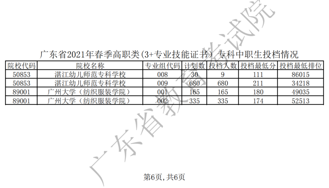 专科录取65312人,21年广东3+证书专科录取分数线公布!!!!