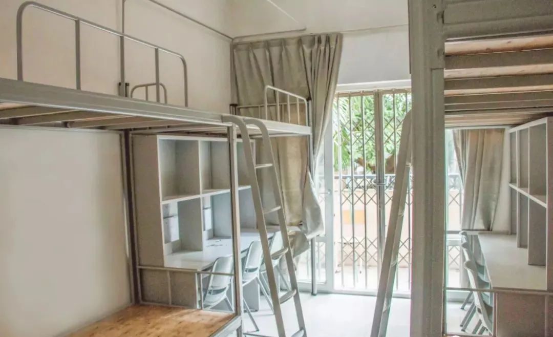 东区大部分是六人间,上下床,空间稍微会小一些,有单独的洗手间,楼层都比较低所以没有电梯