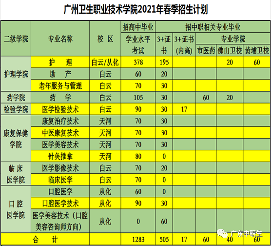 广州卫生职业技术学院,前身是广州医科大学二级学院,学校的办学历史可以追溯到1902年,是百年历史名校和现代医护摇篮。学院建有护理、老年、临床医学、药学、医学检验技术、口腔医学、医学影像技术、康复治疗技术等实训中心。