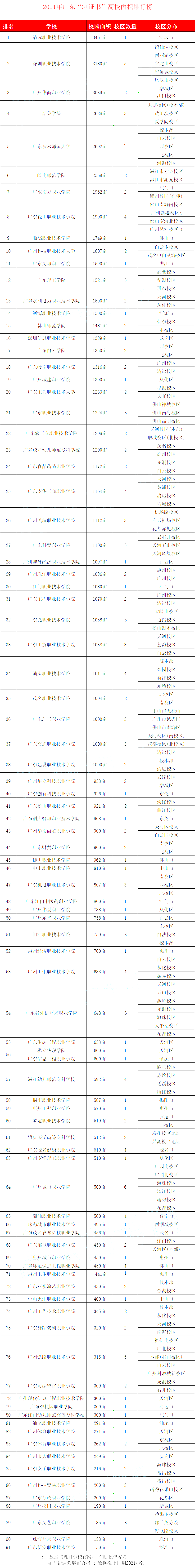 面积排行前三的院校:清远职业技术学院、深圳职业技术学院、广州华商职业学院