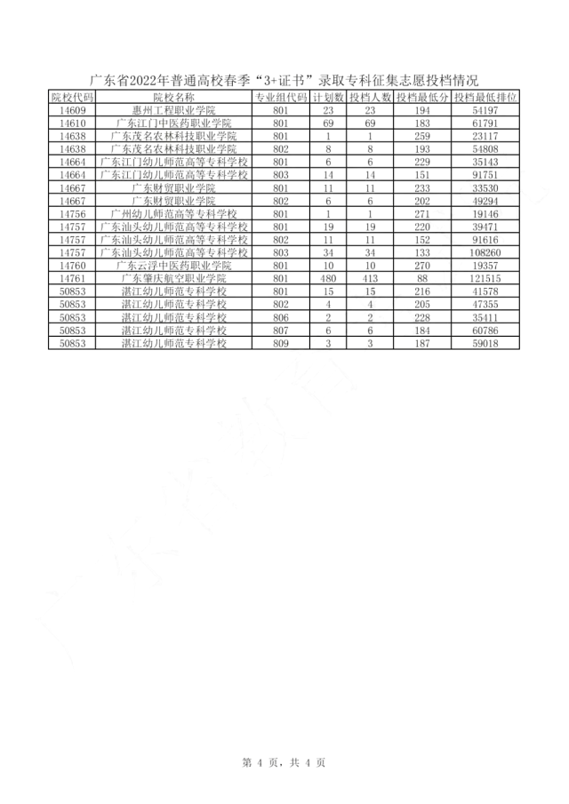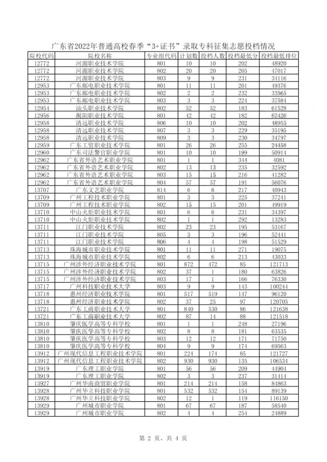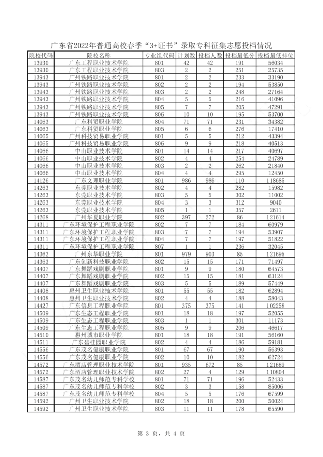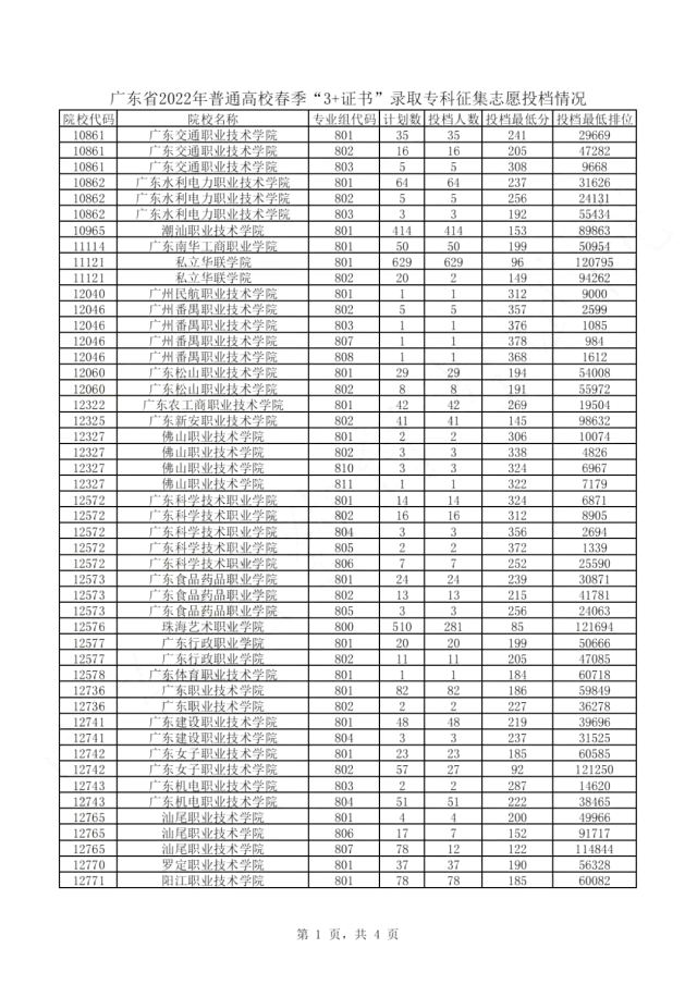3月24日,我省2022年春季高考录取正式投档,我校3+证书统考招生批次生源充足,各专业组均满投,现将各专业组投档情况通报如下: