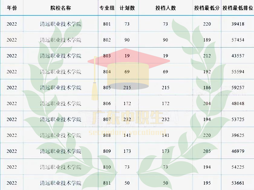 清远职业技术学院其中部分专业可以看到最低分数线,可以看到专业组2/3/4/10的专业最低分数