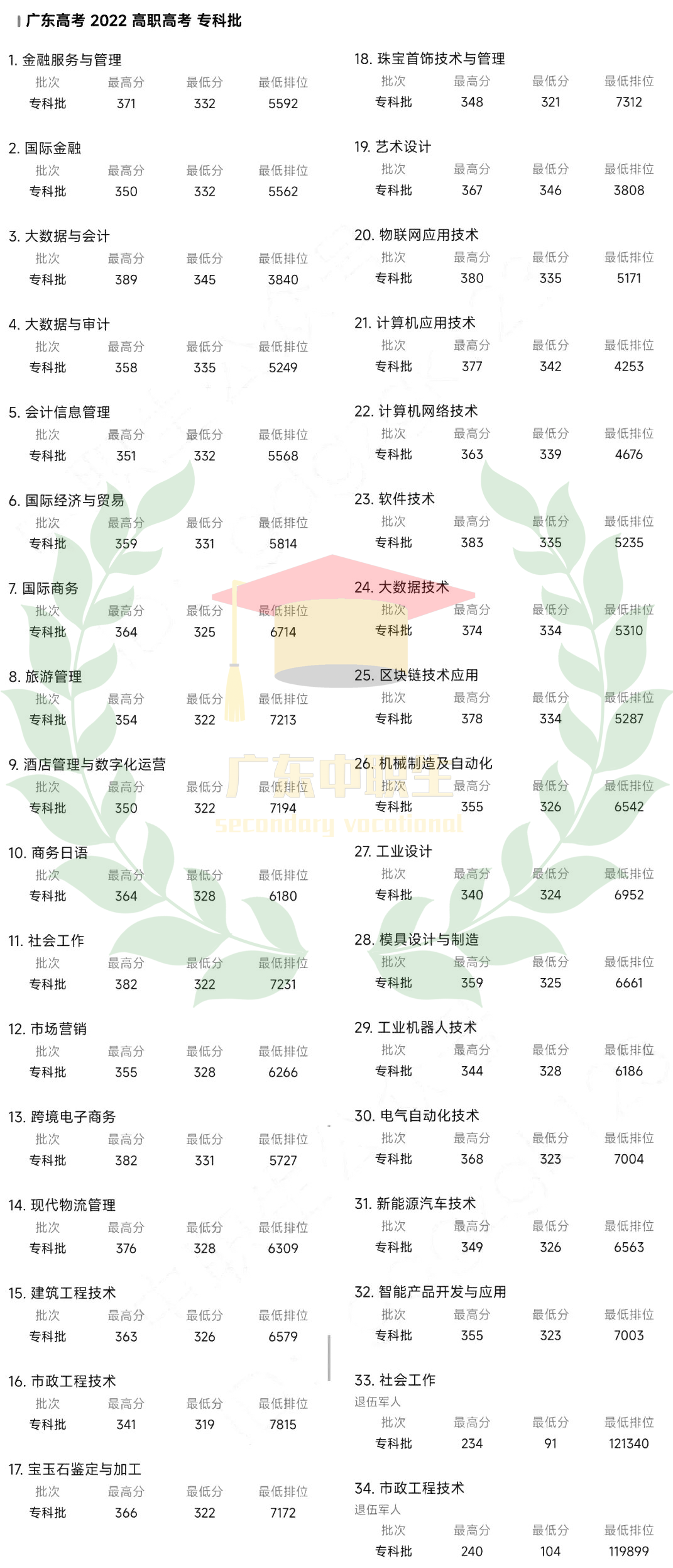 PS:只是部分院校公布了专业分数。关注【广东中职生】公众号,如有新消息大撕兄会持续更新。