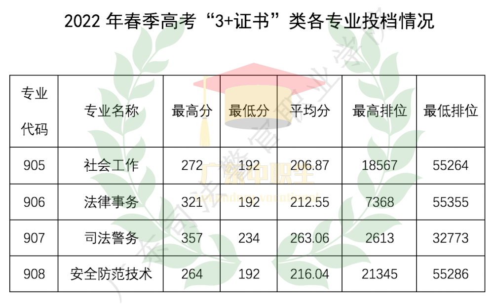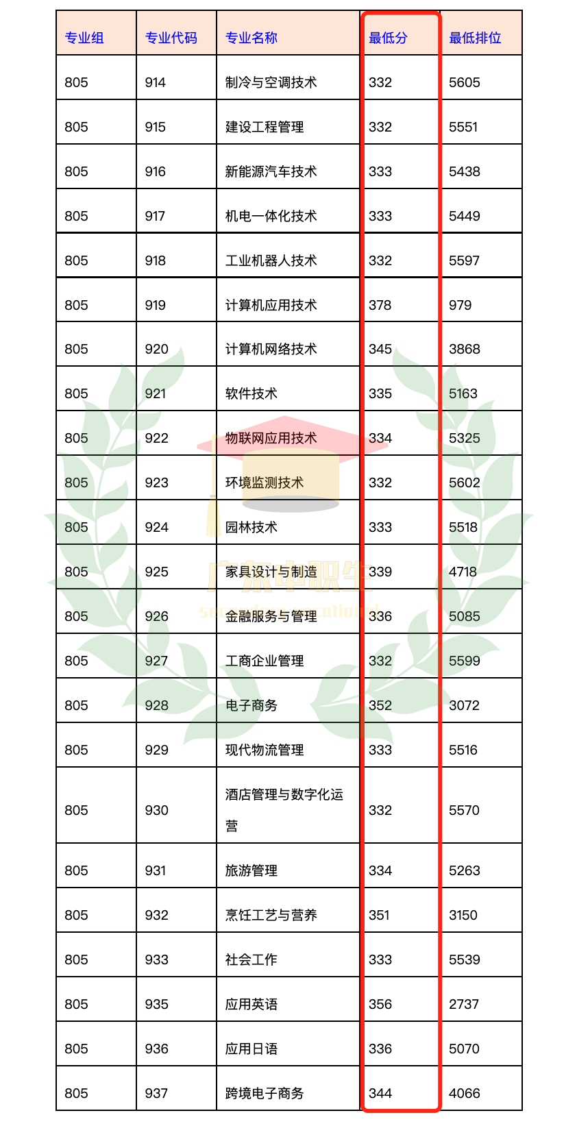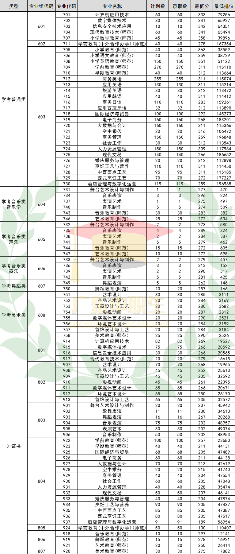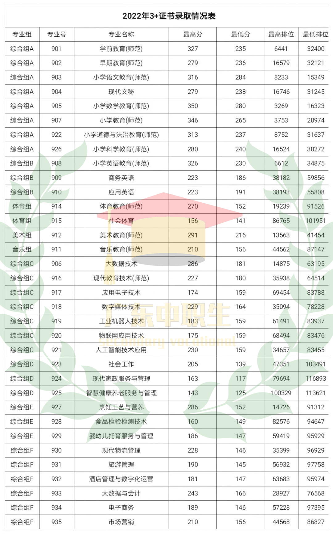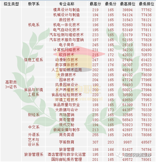 3+证书院校各专业录取分数线是重要的择校参考之一,通过往年专业最高、最低录取分以及排位,可以直接看出该校专业的冷热门程度。