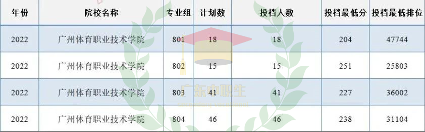 广州体育职业技术学院有些专业组内有2个专业,可以用大概知道这个专业的分数。