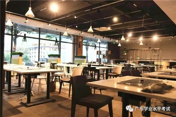 广轻有五个A级食堂,是广东省内首家星级高校食堂。柔和的灯光营造一片清净的环境,还有书架和几片葱绿装饰着周边。