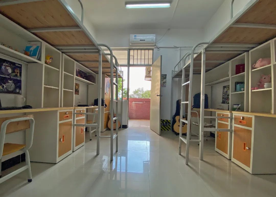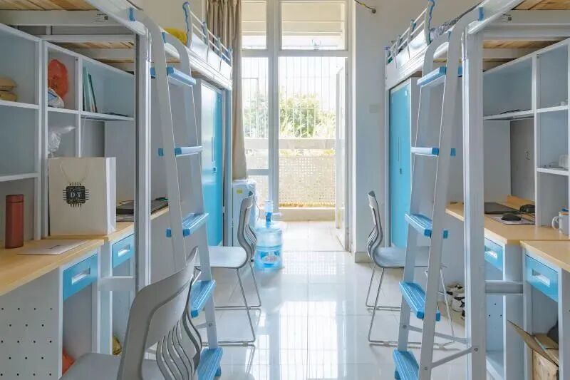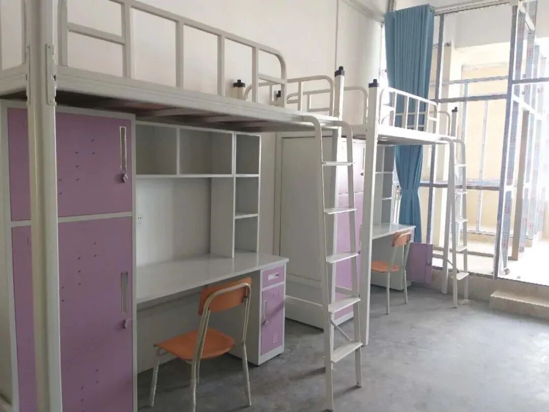 床类型:茂名校区4个上床2个下床;高州校区的2栋和11栋的宿舍为上床下桌,其他栋的宿舍都为上下床