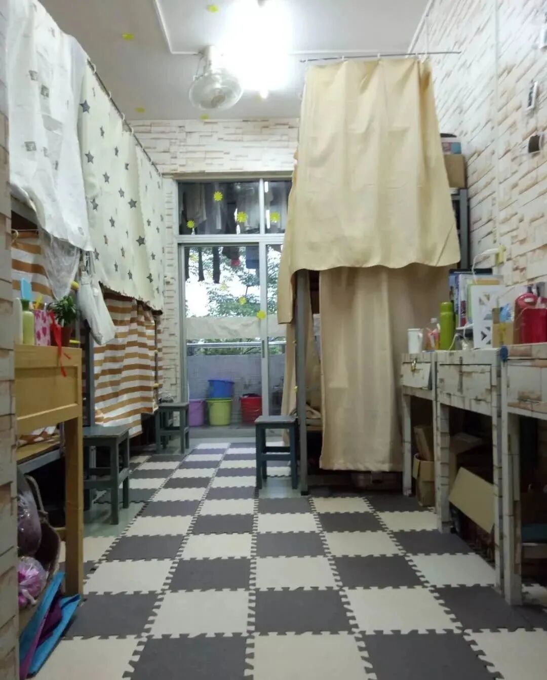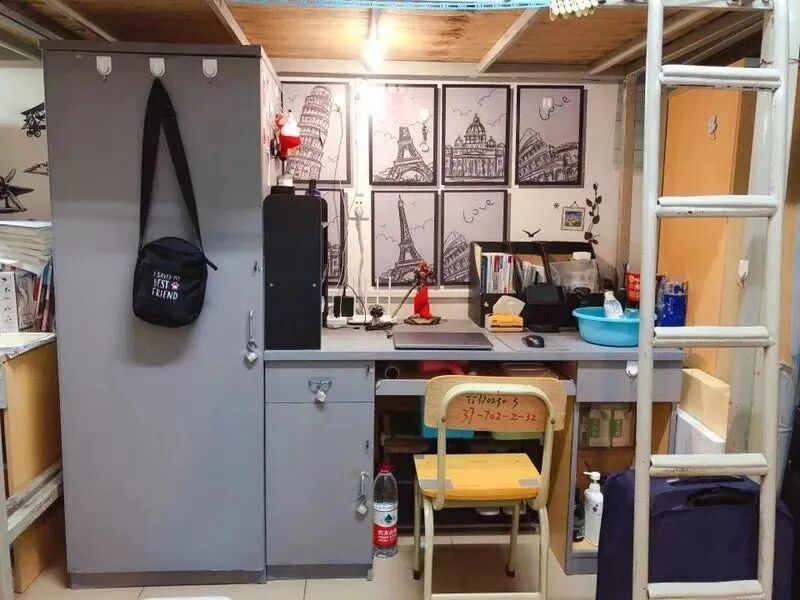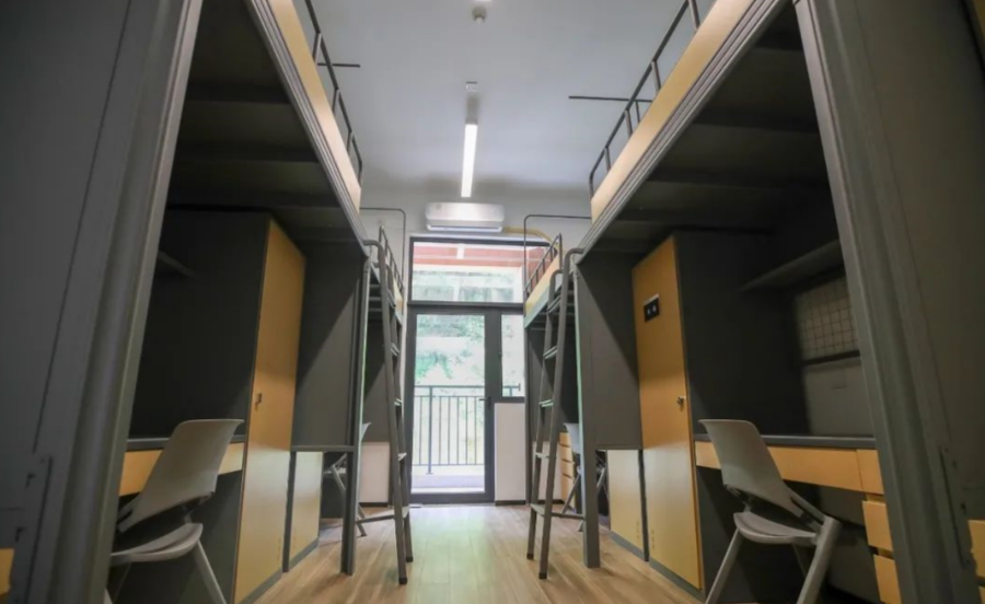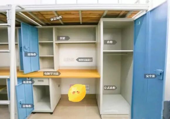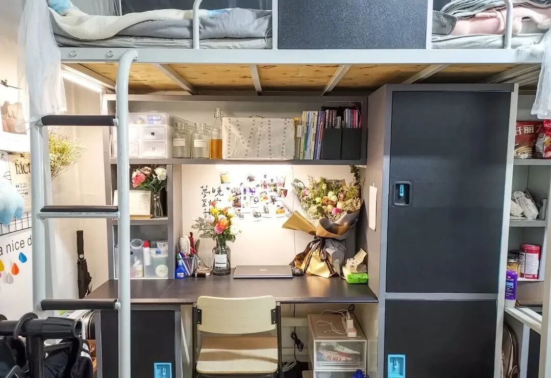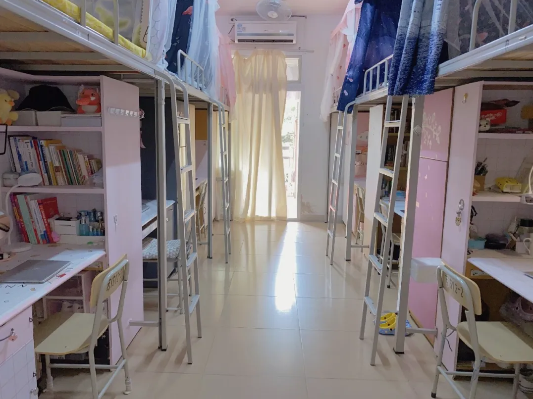 床类型:一部分宿舍为四张上床下桌+两张上下床;另外一部分宿舍为全部上床下桌