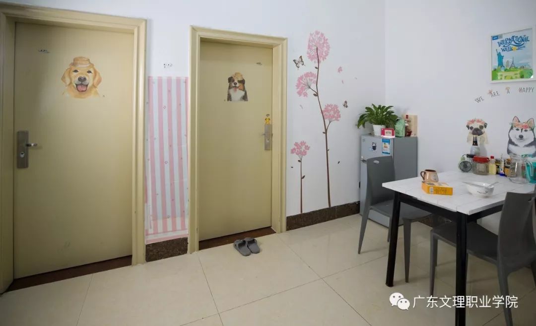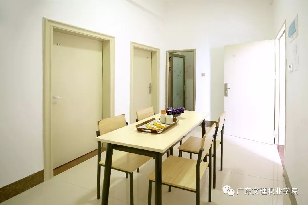 设备与条件:学生公寓宿舍,分单人房两人套间、双人房四人套间、星级六人套间、普通六人房等。配有独立卫生间、衣柜、书桌、仪容镜、花洒、饮水机、空调、电梯,单人房两人套间、双人房四人套间还有餐桌、餐凳和冰箱