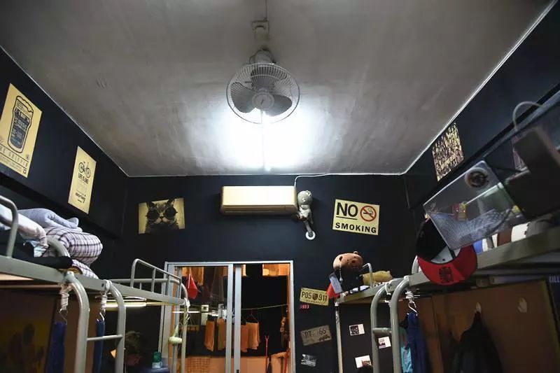设备与条件:8人间每四个人住一个房,共2间房。有2厕所,2冲凉房,1厅,1阳台,1空调,2壁扇,每人有专属的书台和衣柜