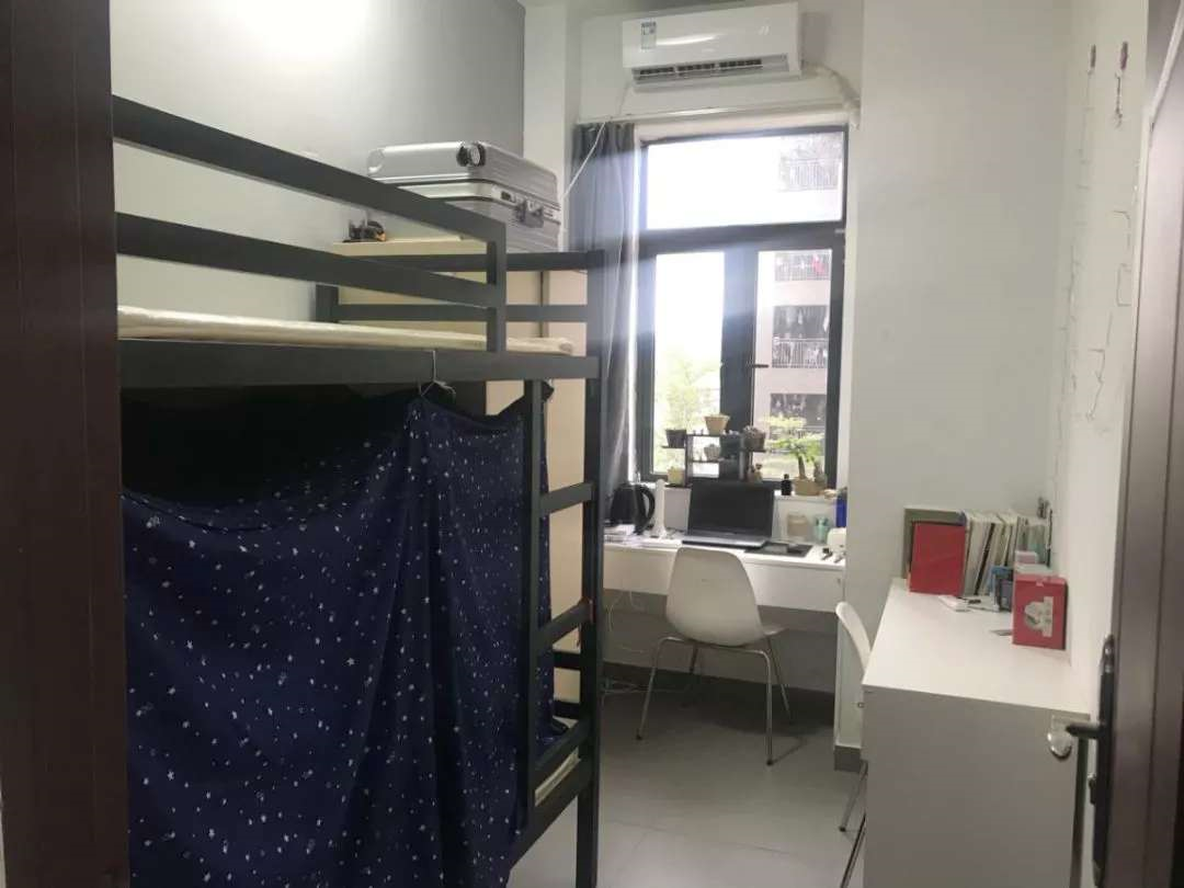 设备与条件:配有独立卫浴、生活阳台、空调、书桌、凳子、书架、衣柜、窗帘、洗手台、花洒、仪容镜、2米床(双人套间平床为1.8米)、床垫、电梯