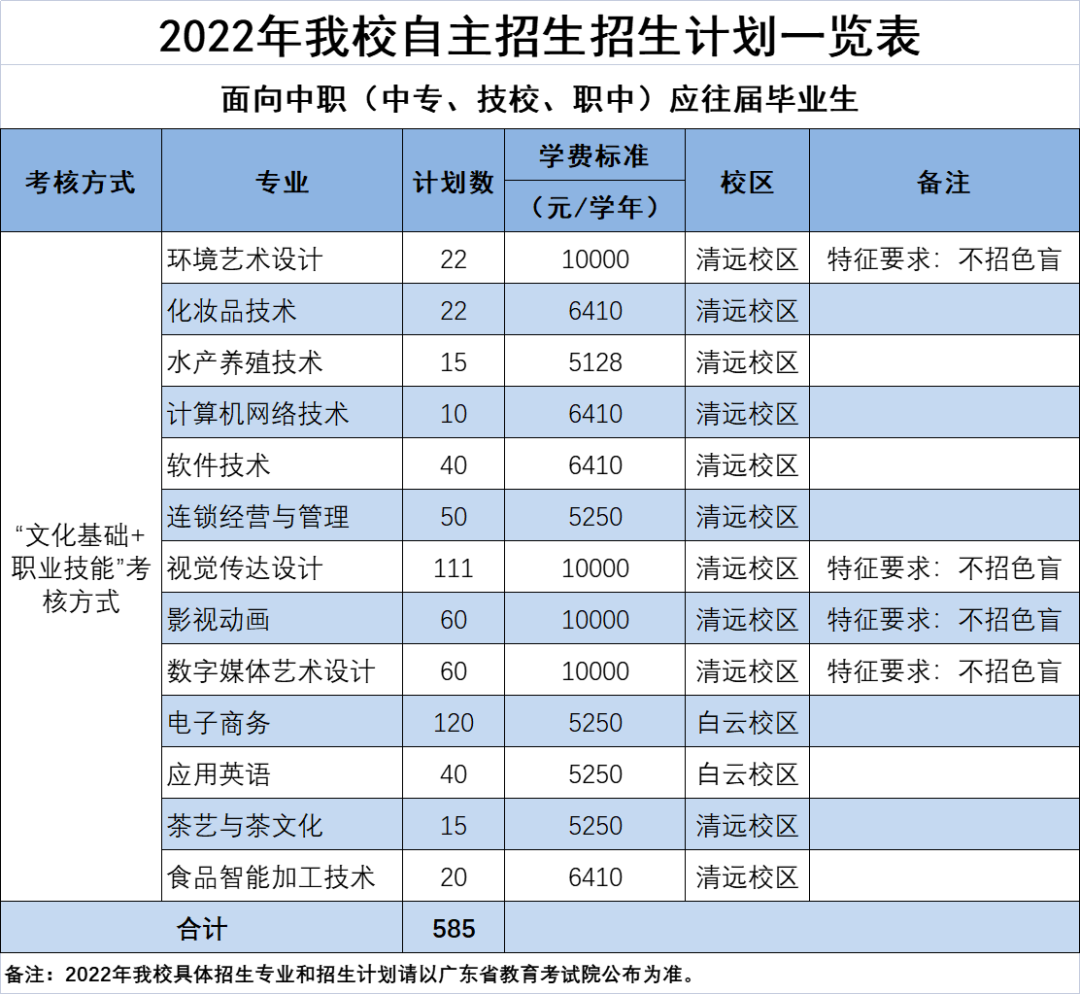 广东科贸职业学院22年面向中职生自主招生计划公布