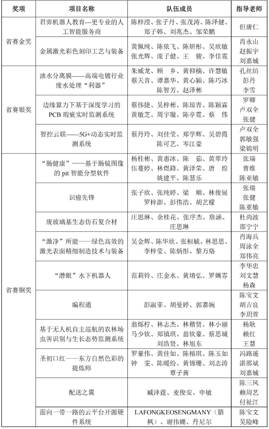 获奖名单
