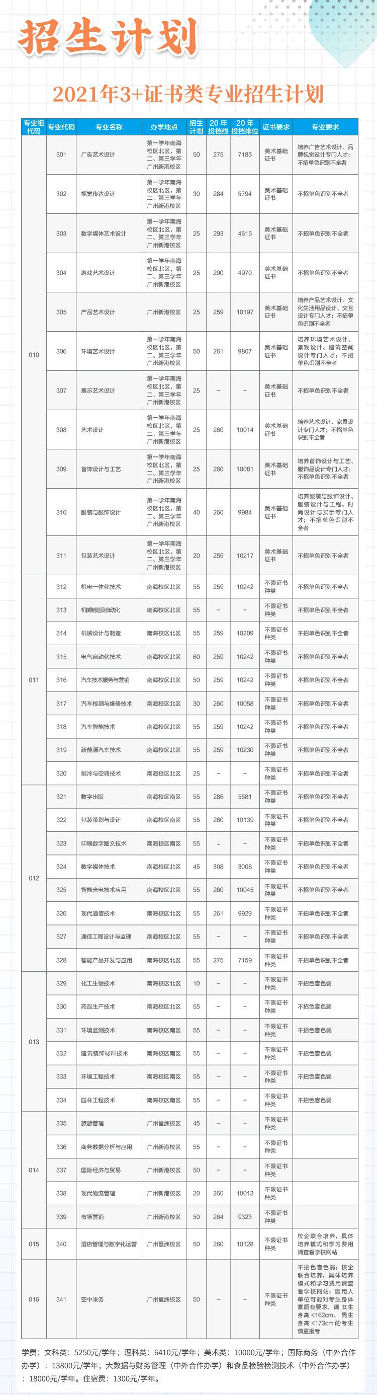 学校现有广州和南海两个校区,其中广州校区定位为“大文科校区”,文科、艺术类专业面向广州现代服务业;南海校区成为“大工科校区”,工科专业面向珠江西岸高端制造业;3+证书招生专业包含设计类、机电类、汽车类、数字媒体类、计算机类、药物类、贸易类、管理类等,从这两个校区的定位来看,广轻工是一所较为综合性高职院校。