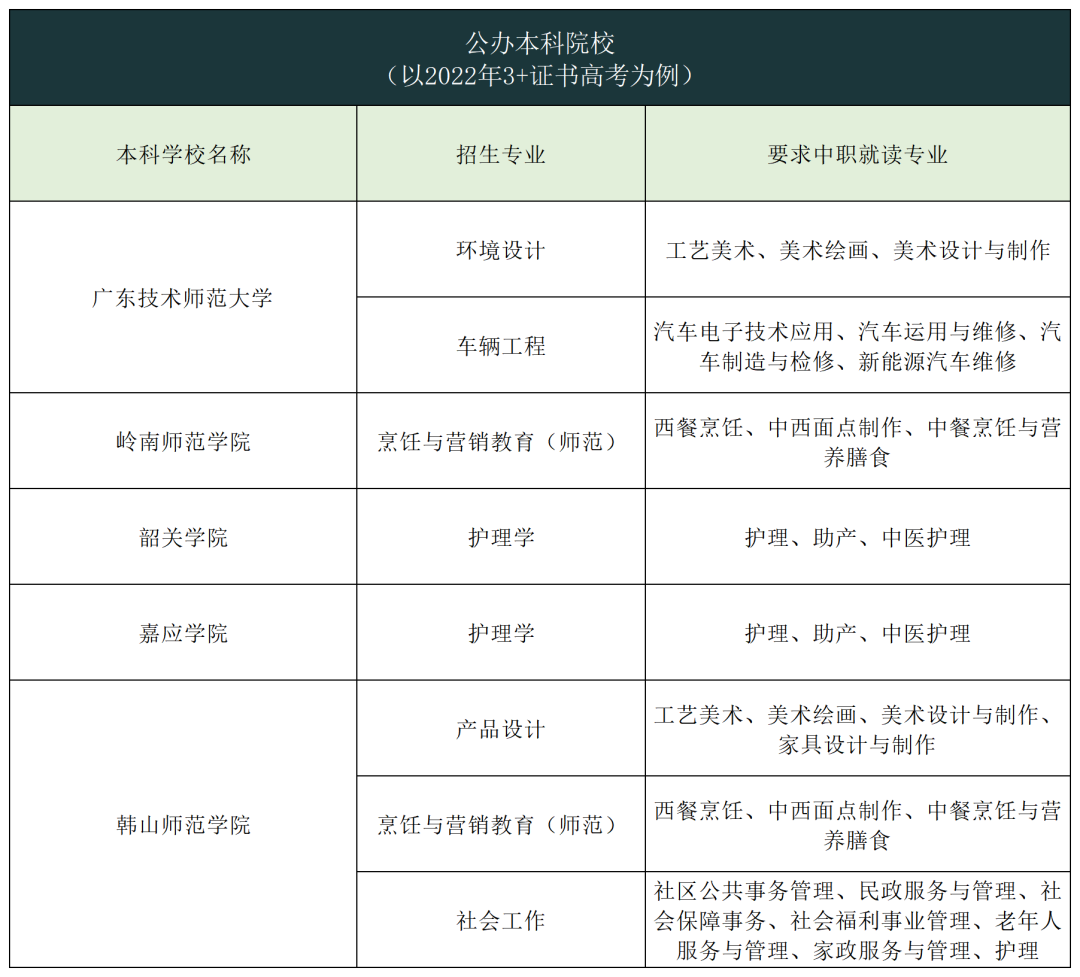 截止到2022年,一共有九所本科院校(五所公办,四所民办)招收高职高考考生。但当前这九所本科院校,都对考生的中职专业有要求,专业不对口无法报考。(专科院校一般对中职专业没有要求,但一些院校专业对证书有要求)