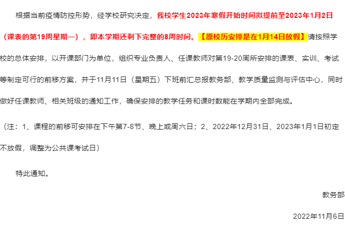 由此来看,该校学生很可能12月31日或2023年1月1日便开始放寒假。